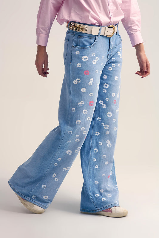 Jeans en denim bleu Barrel à jambe large en délavage léger