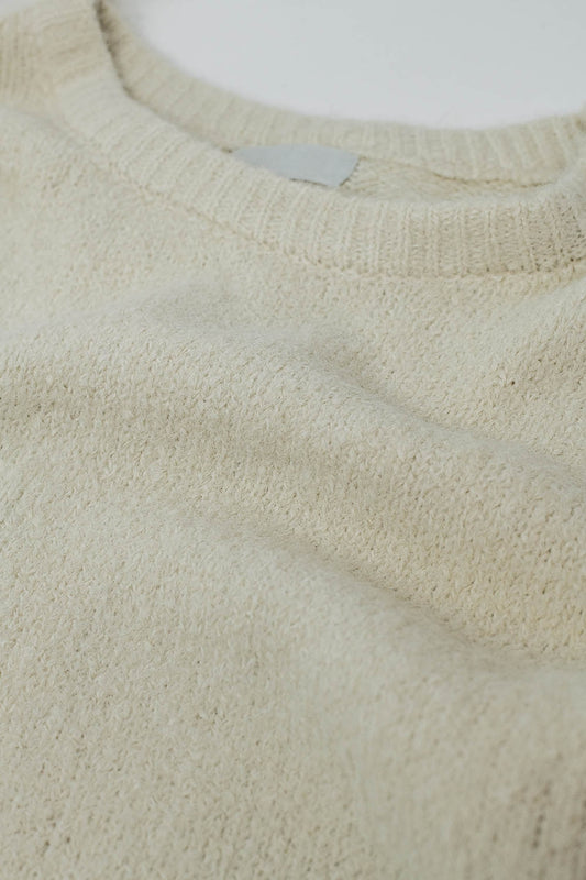 Pull en crochet blanc à encolure bateau et manches longues avec des rayures marron