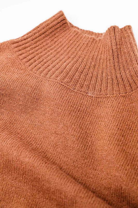 Pull en maille fine de couleur grise avec un col montant et des manches coudées