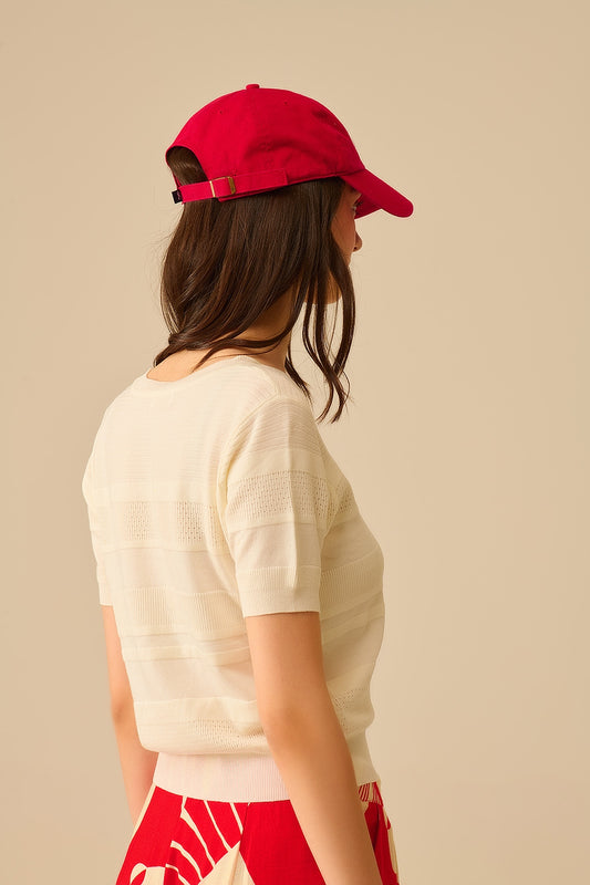 Pull en maille rayée rouge avec détails en forme de cœur rouge