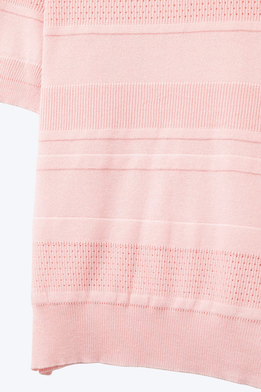Pull en tricot à col en V fuchsia avec détails en maille ouverte