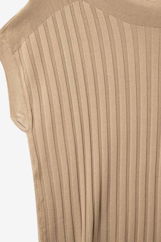 ProchainementPull en tricot côtelé fin camel avec col bateau