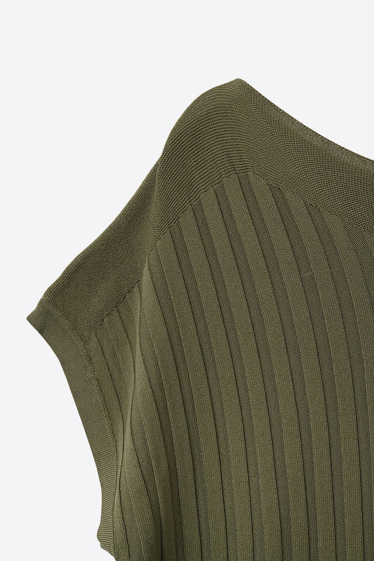 Pull en tricot à col en V kaki avec détails en maille ouverte