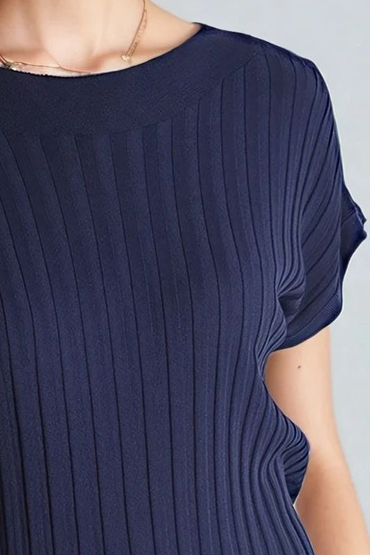Pull en tricot fin côtelé bleu clair avec col bateau