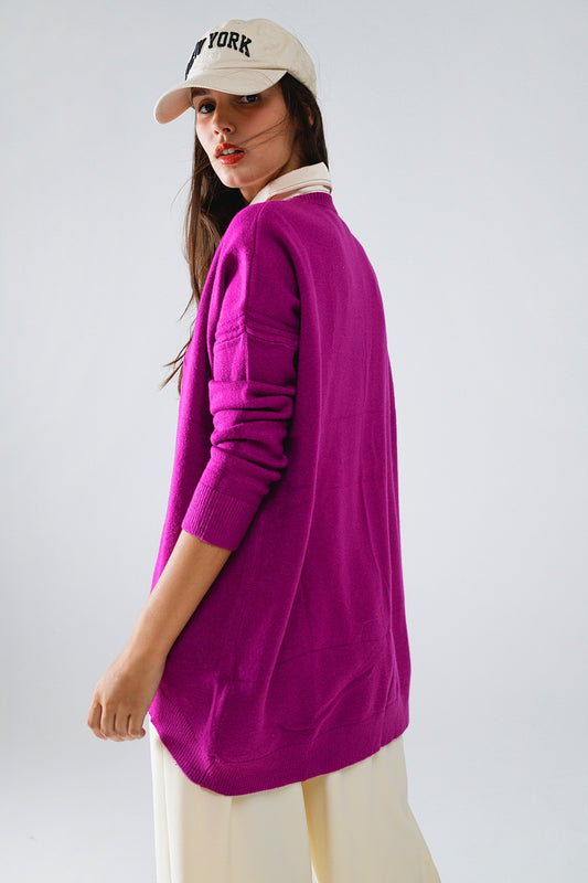 Pull oversize à col ras du cou et à manches longues en fuchsia