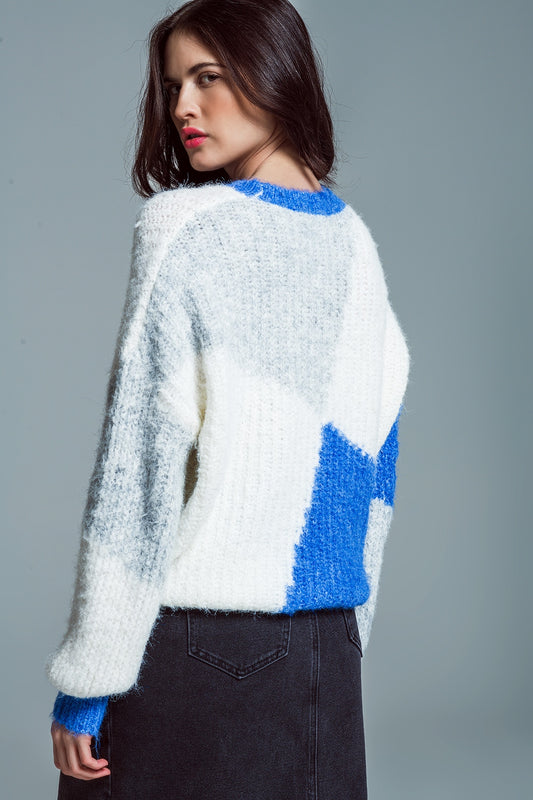 Pull oversize à col montant avec ailes de chauve-souris et rayures en bleu marine et gris