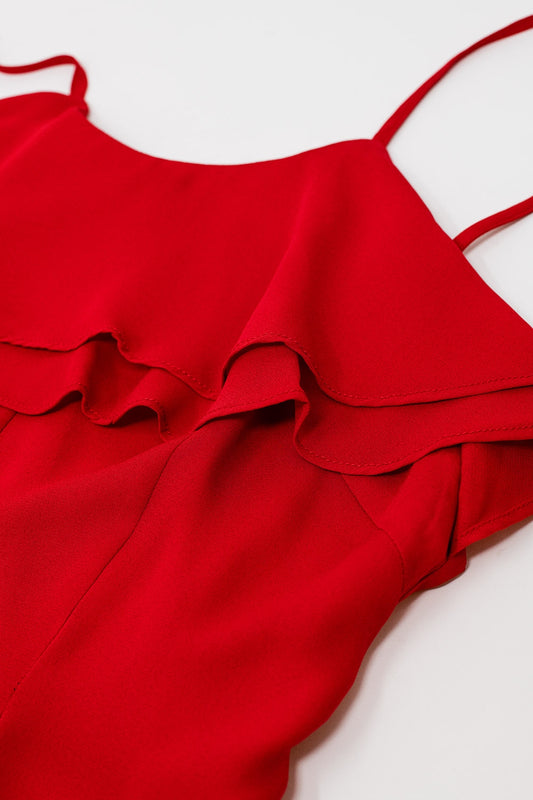 Robe longue à bretelles volantées en tissu tencel bleu clair