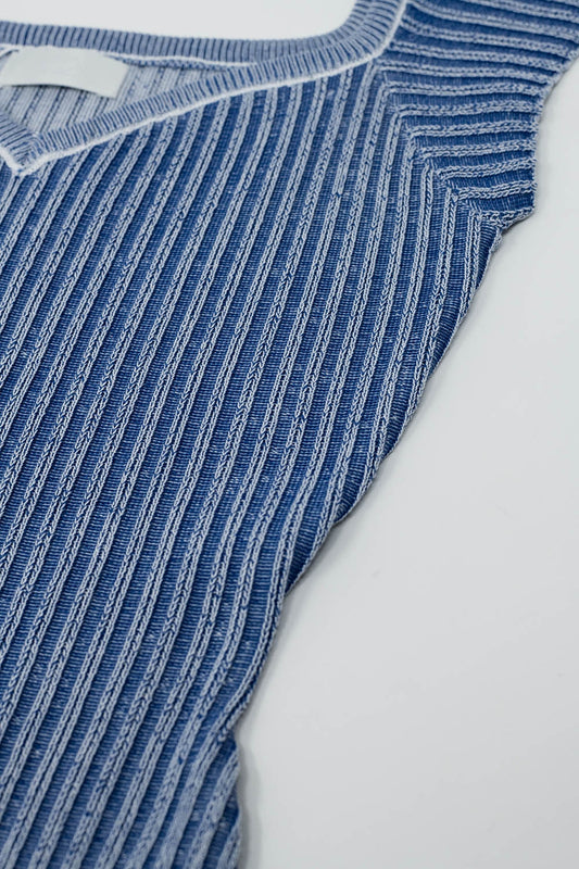 Robe midi bleue en grosse maille côtelée avec manches courtes