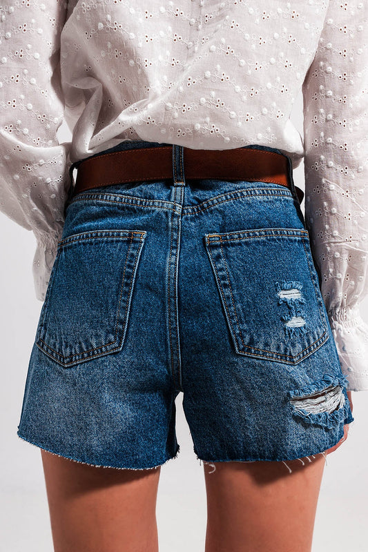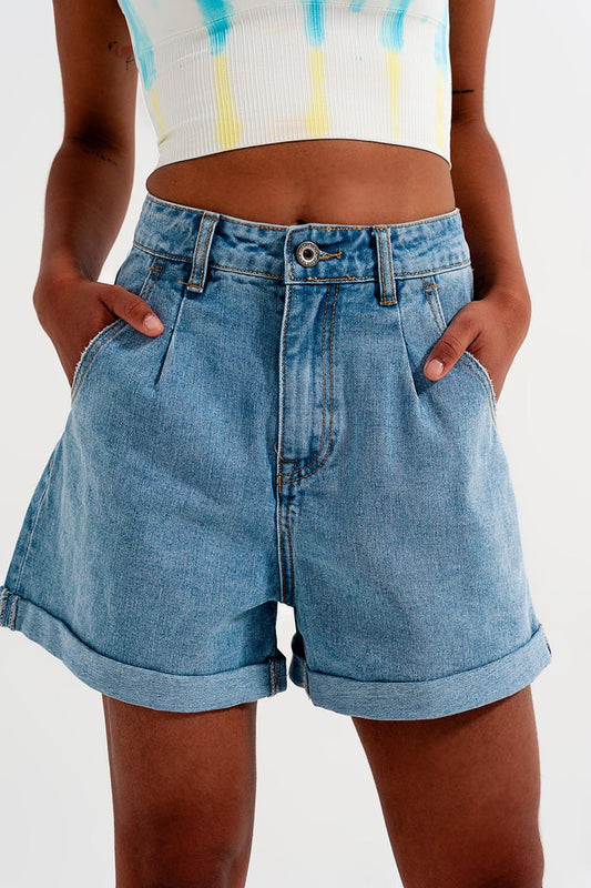 Short de costume avec ourlet à plumes synthétiques en bleu