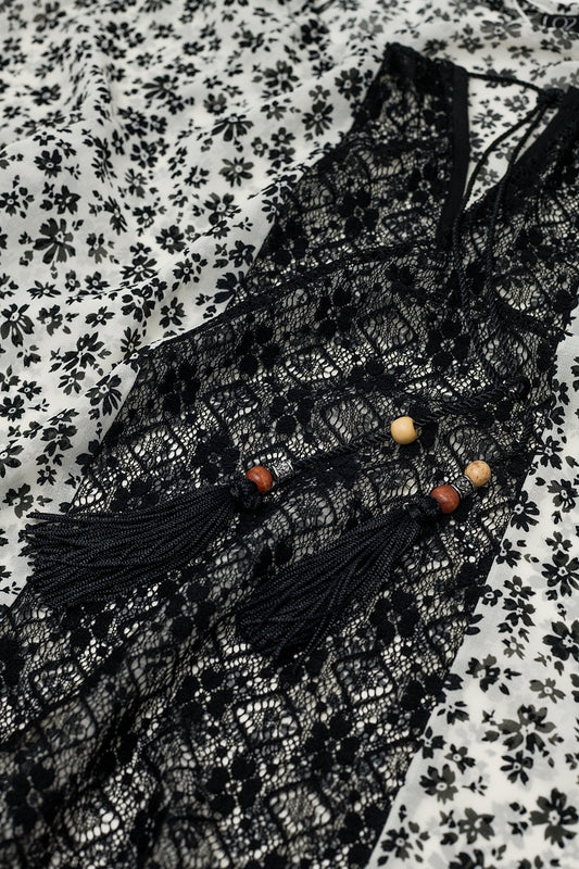 blouse en mousseline de soie imprimée de fleurs avec détails en dentellePrix habituel €44,90Prix habituelPrix unitaire / par-