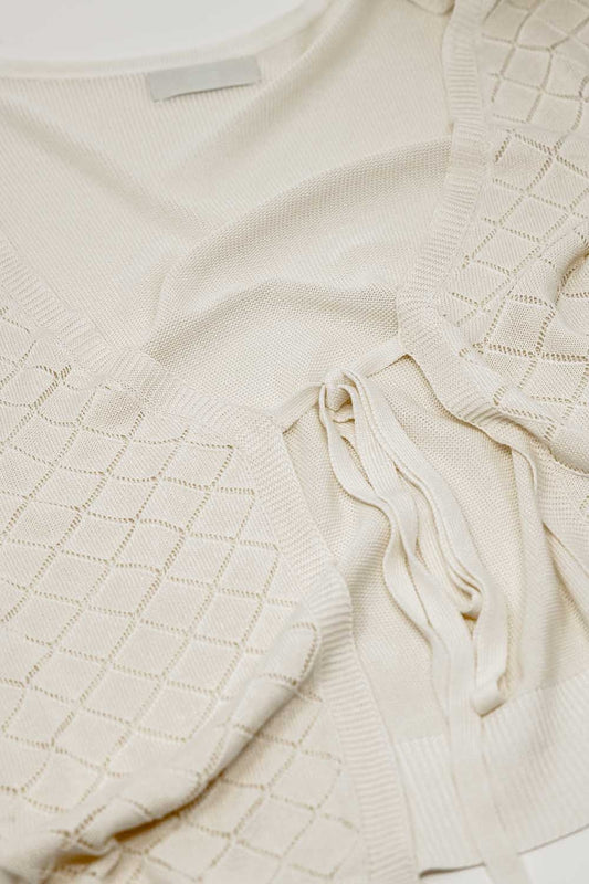 Cardigan blanc en tricot gaufré avec perles et boutons ornés en blanc