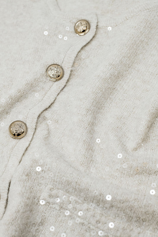 Cardigan à col en V avec paillettes brodées multicouleures en gris