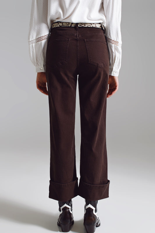 ProchainementJean à jambe droite avec ourlet court en marron