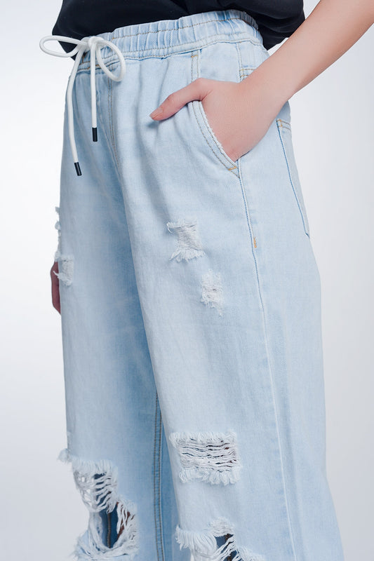 Jean Cropped déchiré avec ourlet à franges Bleu