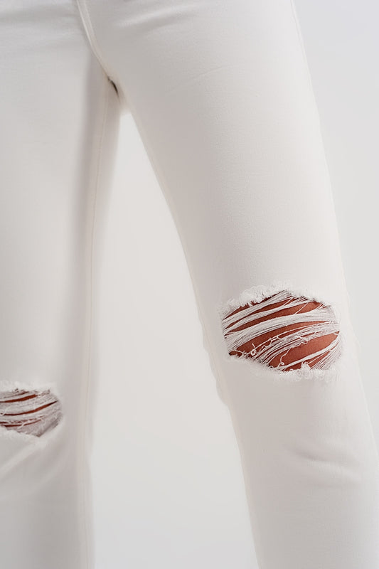 Jean court rigide coupe évasée à ourlets bruts couleur crème