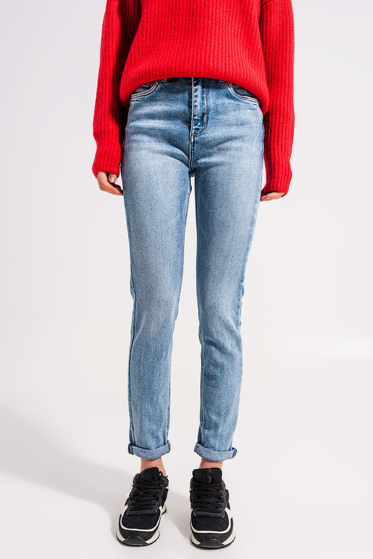 Jean délavé foncé avec rayures latérales brillantes argentées