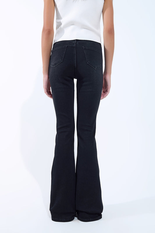 Jean évasé avec bordure de ourlet brut en gris foncé