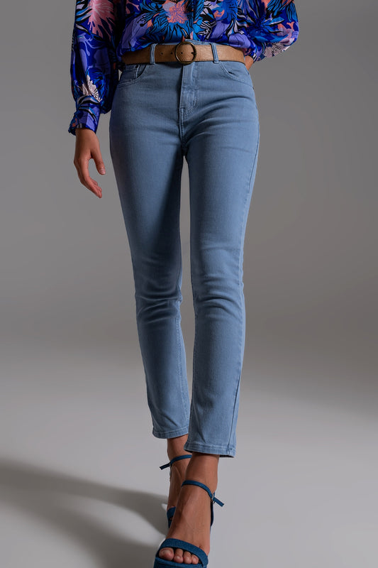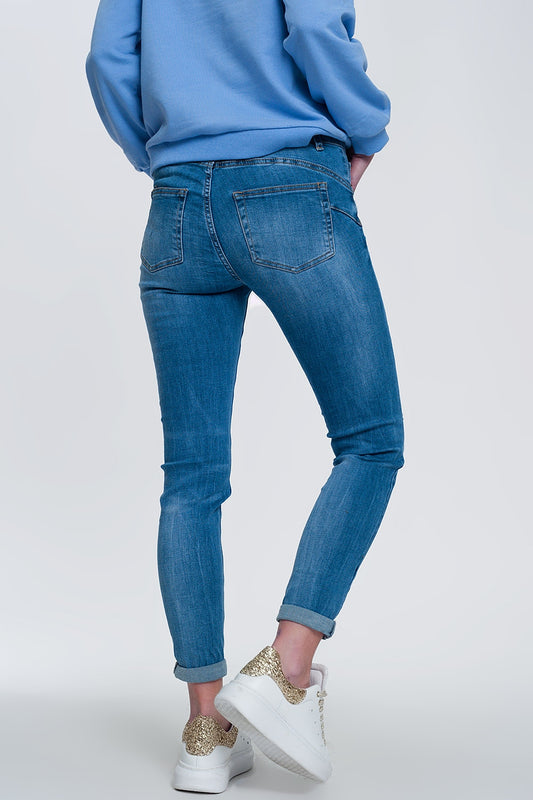 jean skinny en denim léger avec chevilles pliées et détail déchiré