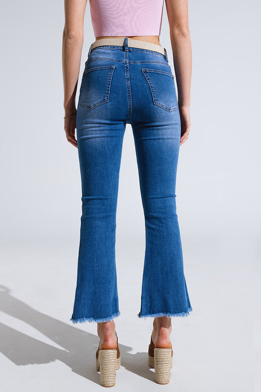 Jean skinny taille haute à ourlets bruts Bleu foncé