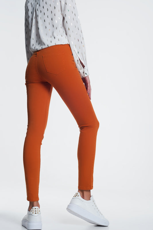 Jean Skinny Extensible avec Empiècements en Délavage Moyen et Détail de Ceinture