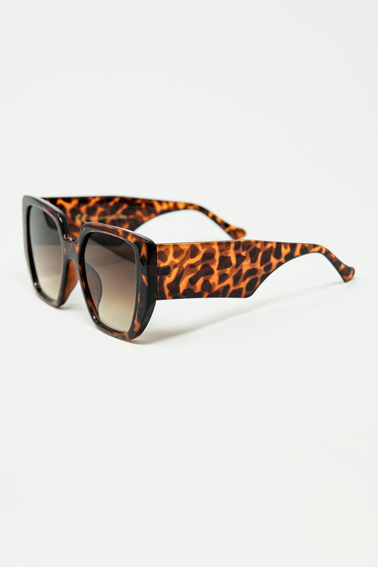 Lunettes de soleil carrées noires avec imprimé animalier marron sur le côté