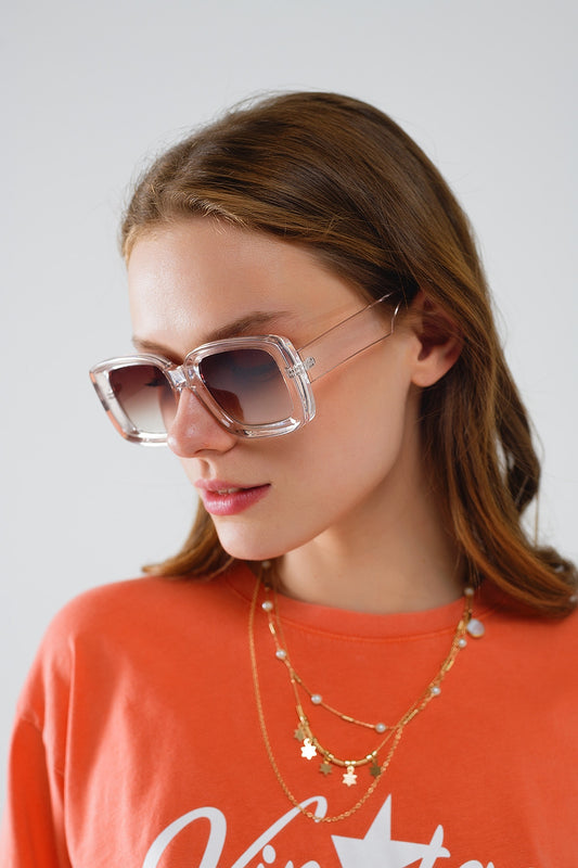 Lunettes de soleil rectangulaires roses transparentes avec verres fumés roses