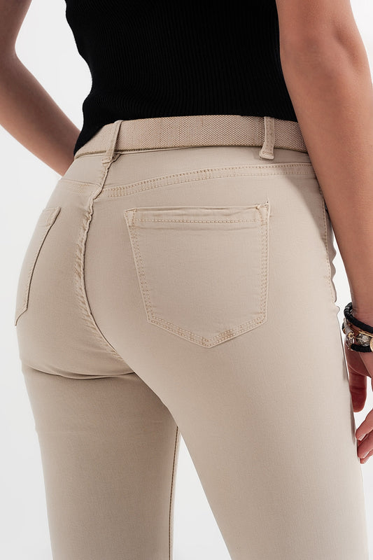 Pantalon droit avec poches latérales et pinces en Beige