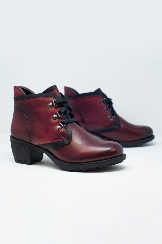 Bottes en cuir à lacets bordeaux