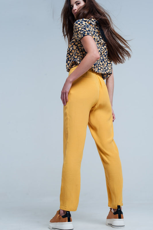 Pantalon moutarde avec Ceinture de satin