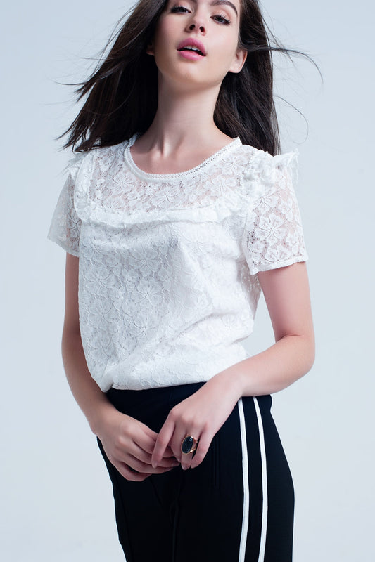 Pull blanc avec des détails de volants