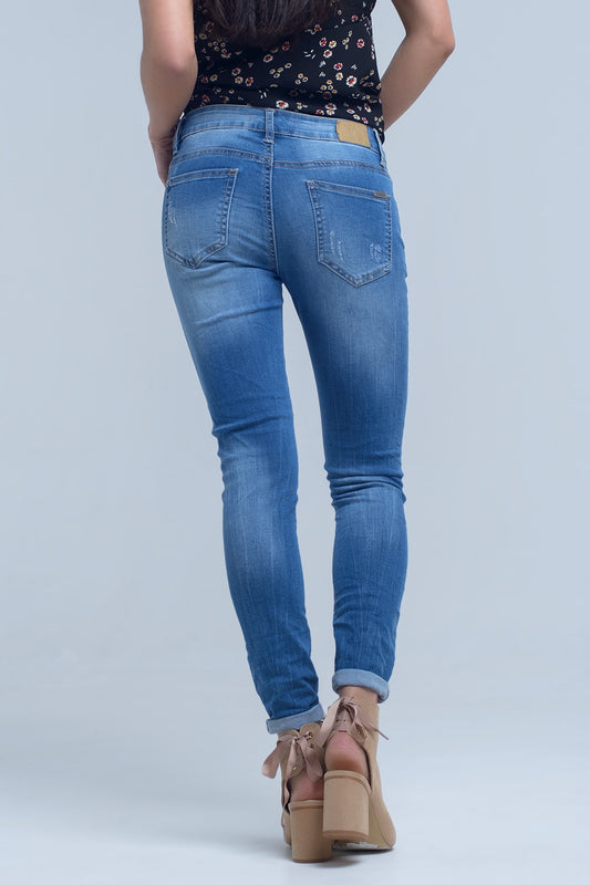 Jean avec déchirures déchiquetées et poignets à coupe brute