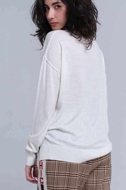 Pull asymétrique en crème