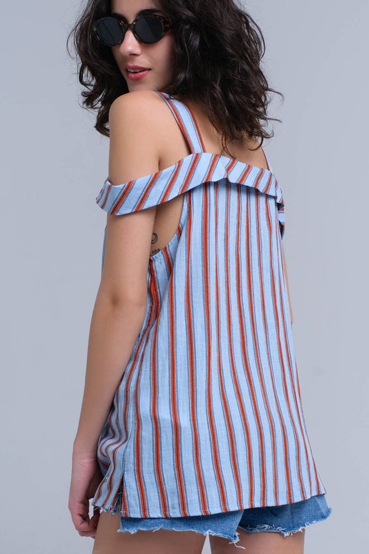 Top bleu avec des rayures orange