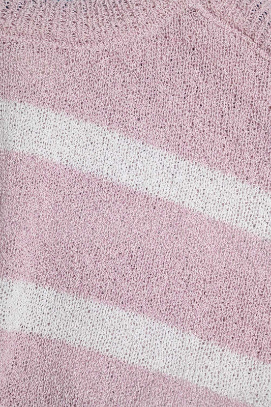 Pull Heather avec Épaules Ouvertes et Rayures Horizontales en Rose