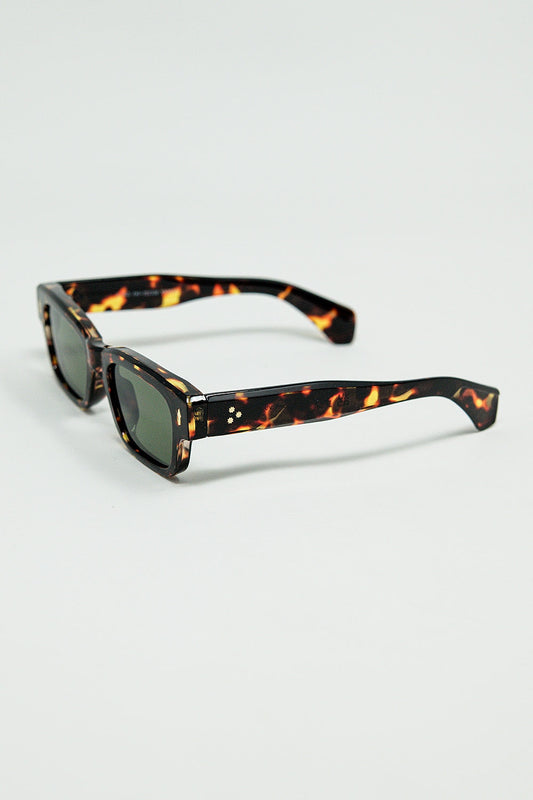 Black square sunglasses with brown animal print on the side