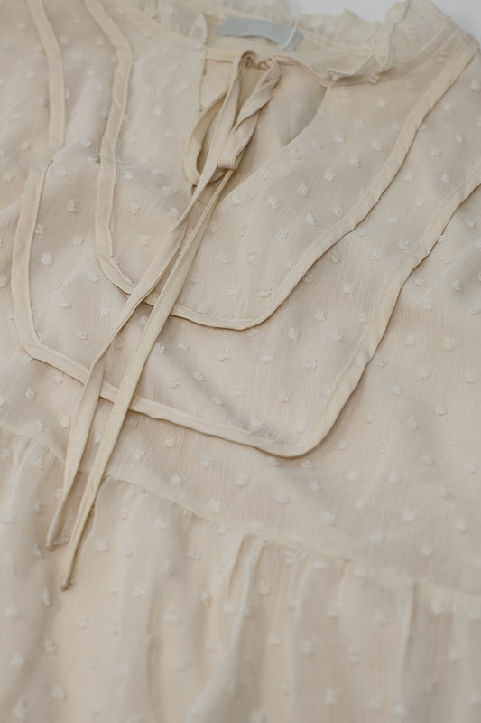 Chemise blanche avec extrémités à glands et fermeture par liens croisés