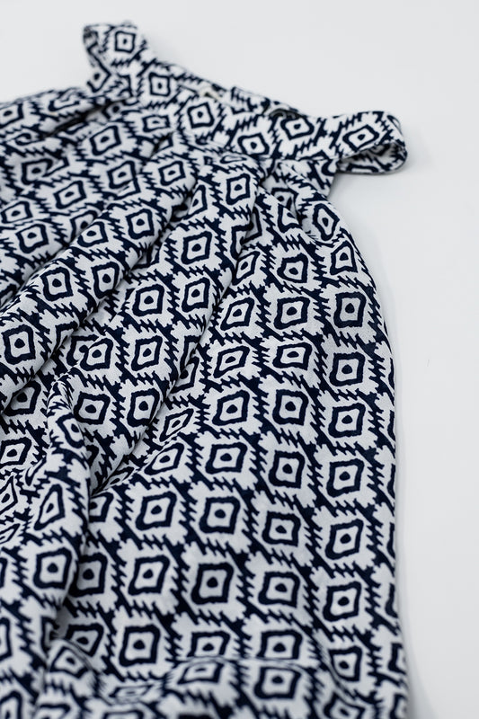 Robe Midi Côtelée avec Détails d'Impression Tribale et Ceinture