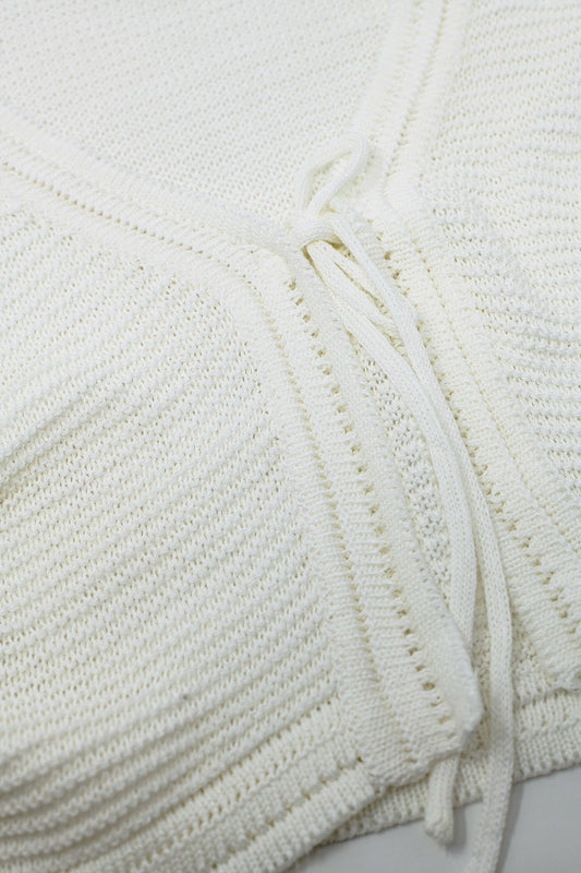 Cardigan en maille à manches longues et clochettes en blanc avec détails de nœuds
