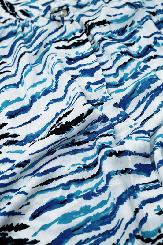 Chemisier blanc à imprimé animalier bleu et manches longues