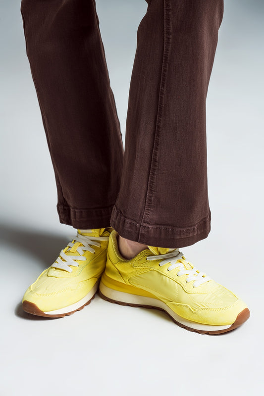 Jean droit marron avec reflets métalliques dorés
