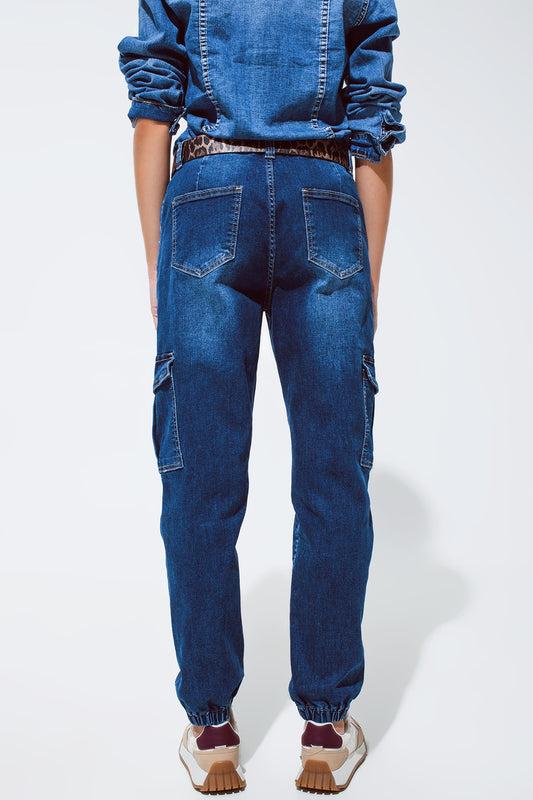 Jeans style cargo avec couture sur le devant en délavage moyen