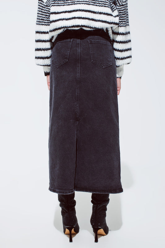 Jupe longue en denim noir avec fente dans le dos