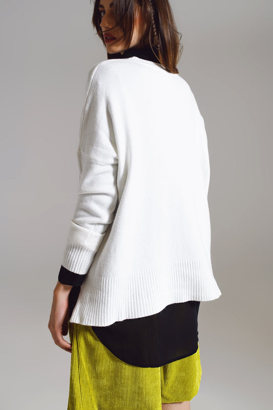 Robe moulante mi-longue en maille avec col roulé en blanc