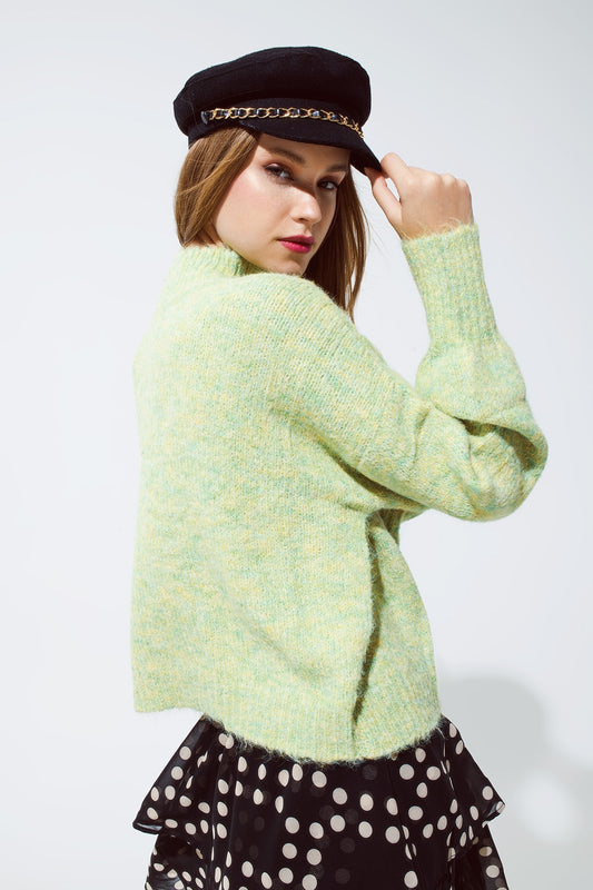 Pull à col roulé et poignets retroussés en tricot de gaufre vert