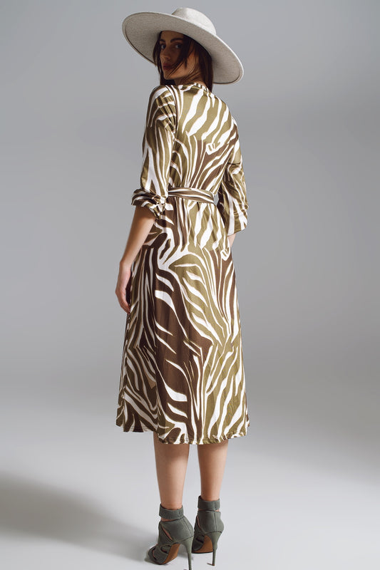 Robe portefeuille avec ceinture Midi dans un imprimé zèbre vert olive et crème