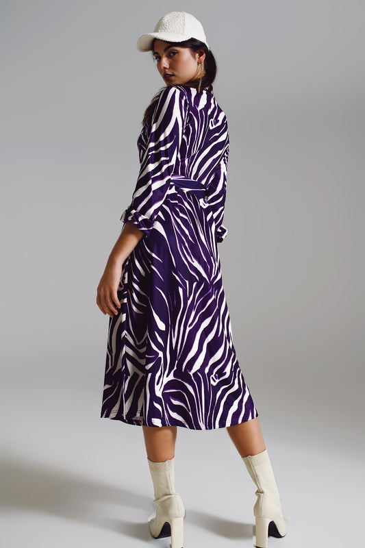 Robe portefeuille ceinturée Midi à imprimé zèbre violet et crème