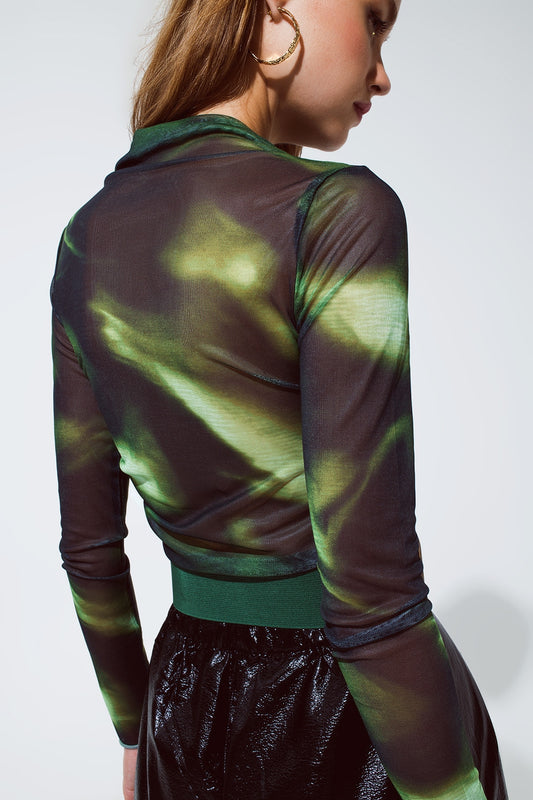 Haut en filet froncé sur le côté avec un imprimé violet abstrait
