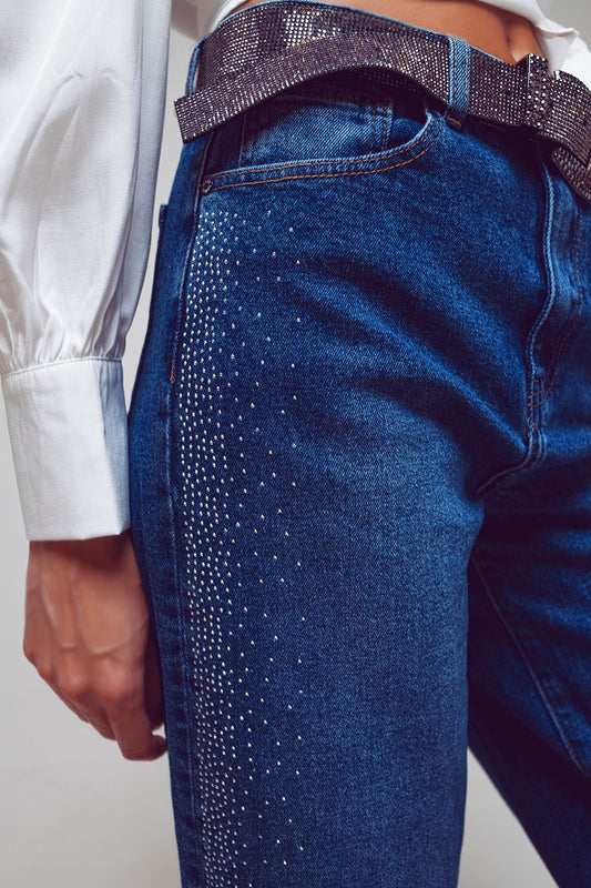 Jean à jambe large avec des détails en diamant sur le côté en toile délavée
