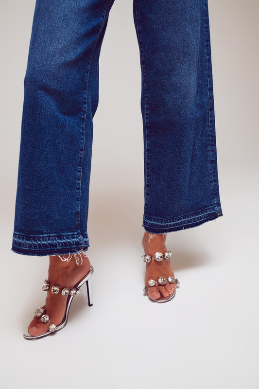 Jean à jambes larges avec détails d'ourlet en lavage moyen