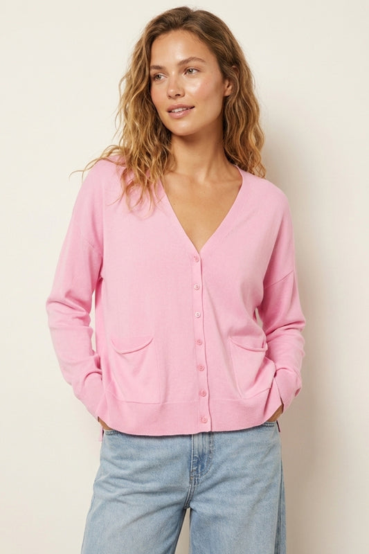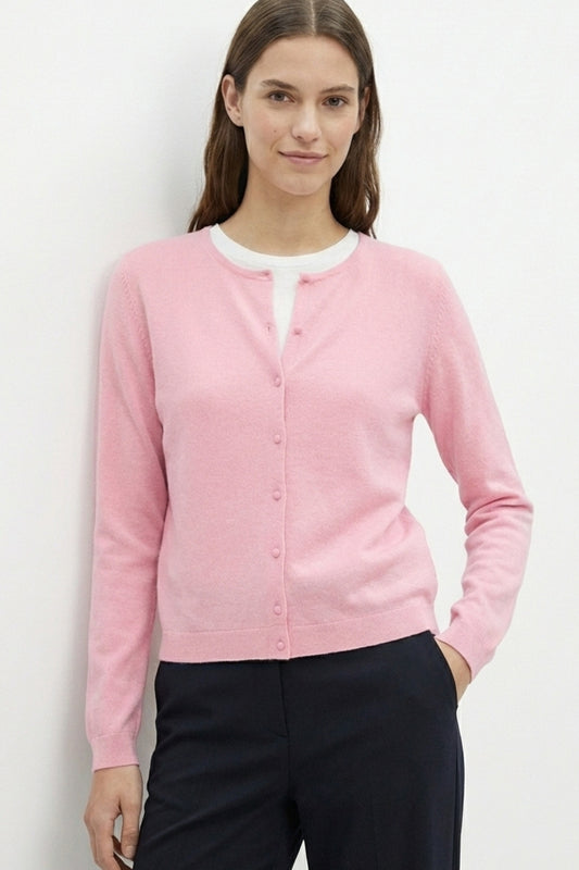 Cardigan en maille côtelée rose pâle avec boutons en nacre